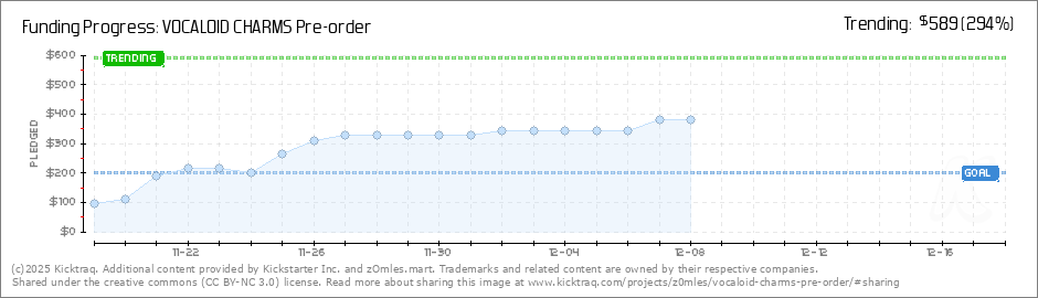 Help your backers reach your daily goals and help others see how you're doing. It's easy, with Kicktraq Mini.Here are a few quick snippits of code you can use to embed your personalized widget on your website, in your blog, and even on your favorite forum.
