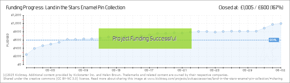 WE DID IT!! We have reached £800 and that means the first two mini pins have now been FUNDED 🙌🏻 These two pins of the moon on a glittery cloud and a glittery star along with the Aim for the Moon and Land in the Stars enamel pins will be put... (Read More)