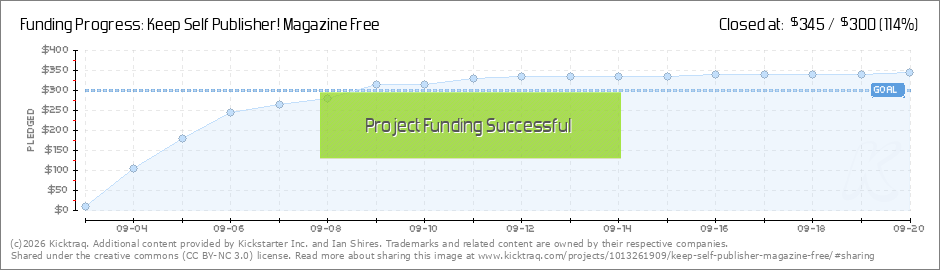 Woke up today to find that we're fully funded...which means that Self Publisher! Magazine will be able to launch the printed editions AND remain as a FREE PDF for all of 2014. That's GREAT, folks. But let's not stop there! Keep spreading the word,... (Read More)