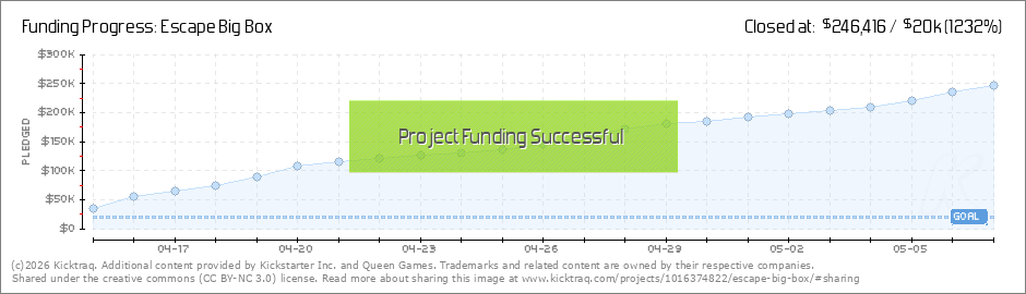 Good evening everyone! Thank you all so much! We are very pleased to announce that you have unlocked Mammut!!!! http://www.boardgamegeek.com/boardgame/95613/mammut One of your fellow backers, Jonathan Coulombe has kindly created an Escape Big Box... (Read More)