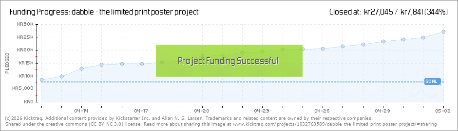 Dear backers ... you guys rock! The limited print poster project dabble will now be a reality in your homes, be available online and might also end up at an exhibition or two. So what's going to happen now? As soon as the kickstarter campaign is... (Read More)