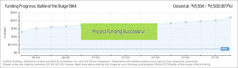 Thank you backers for a Great Start! 1944 Battle of the Bulge is a great game that you are making happen. Your support is appreciated. (Read More)