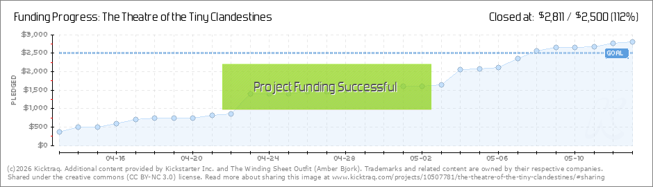 The Winding Sheet Outfit and Theatre of the Tiny Clandestines thank you from the bottom of our poor, withered, jackalopean hearts. You've helped us reach our Kicking Start goal, and we couldn't be more grateful. The campaign ends at 11:59am on... (Read More)
