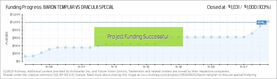 Thank you so much to everyone who has backed Baron Templar Vs Dracula so far and anyone that has backed ANY of our books this past year! You don't know how much this means to us to be able to make comic books and spread our love of this medium. The... (Read More)