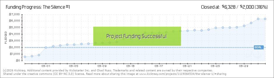 In less than 8 hours since my last update and only a few days since the launch, we have officially reached the funding goal for The Silence #1 Kickstarter!!! The response has been incredible and far beyond what I expected! Thank you!!! Now, on to... (Read More)