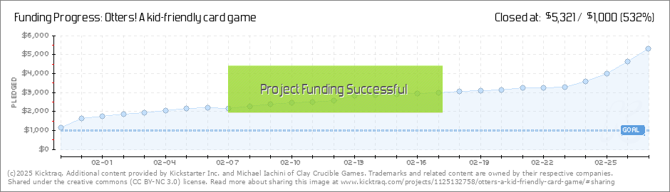 Greetings, fellow otter lovers! Michael here, with a quick update on the campaign. First, we made it to the $3,000 stretch goal - which means yes, we will have unique photos on all of the 1/2/3 otter cards! Thank you all for your support and for your... (Read More)