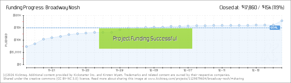 What a day! Thank you all so much for your support! I am overwhelmed with gratitude. Thank you all for bringing me one giant step closer to making Broadway Nosh a reality! 29 days to go!! (Read More)