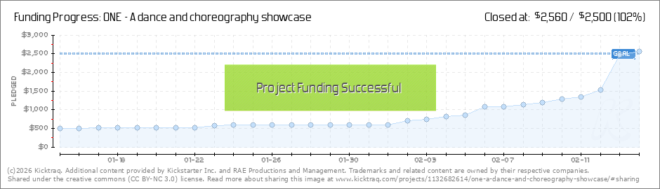 Thank you to ALL our amazing backers for helping us reach our goal and fund our show, ONE! Your contribution is not only helping us produce this show... but is also contributing toward a movement that will affect dancers and choreographers in the... (Read More)