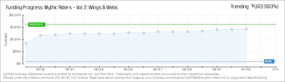 Help your backers reach your daily goals and help others see how you're doing. It's easy, with Kicktraq Mini.Here are a few quick snippits of code you can use to embed your personalized widget on your website, in your blog, and even on your favorite forum.