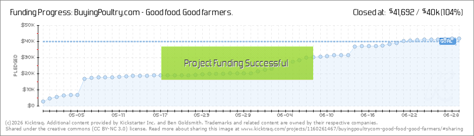 Hi all! I'm very excited to see that our Kickstarter has been getting media attention. Check us out in Modern Farmer. Food Politic interviewed me on why I thought BuyingPoultry.com was so important. Jonathan Safran Foer's involvement in our... (Read More)
