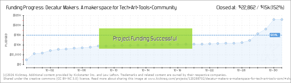 From the team over at Decatur Makers, we just can't say how grateful we are for the support and encouragement over the past 32 days. We're crazy excited about the future as we go to work on all the projects that this campaign will make possible. We... (Read More)