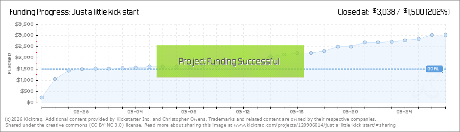 Help your backers reach your daily goals and help others see how you're doing. It's easy, with Kicktraq Mini.Here are a few quick snippits of code you can use to embed your personalized widget on your website, in your blog, and even on your favorite forum.