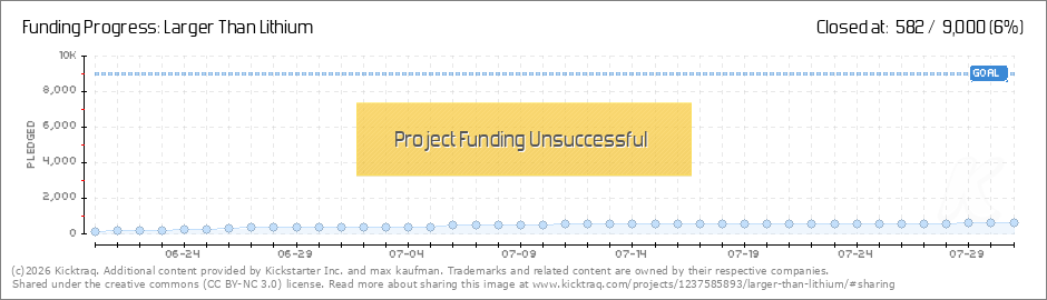 Our first backer has come forth! Excited and full of gratitude... Please remember to share the link on your Facebook page to get the campaign more attention. http://www.kickstarter.com/projects/1237585893/larger-than-lithium Will update tomorrow,... (Read More)