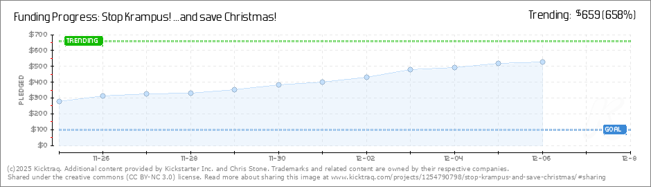 Help your backers reach your daily goals and help others see how you're doing. It's easy, with Kicktraq Mini.Here are a few quick snippits of code you can use to embed your personalized widget on your website, in your blog, and even on your favorite forum.