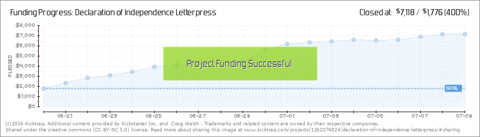 I've had a few people recommend that I include some kind of overview statement about the project when the prints are shipped. I think that's a great idea. The feeling is that the backstory of the project (John Dunlap, Caslon typefaces, cannon... (Read More)