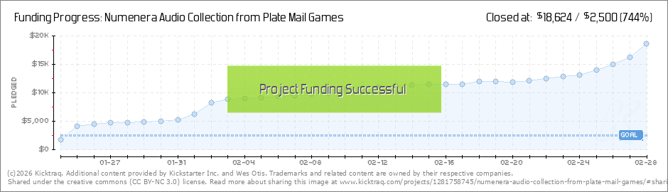 I woke up to find we had funded! Thank you all so much, we really appreciate your support. Now we start on stretch goals. Each new track is $500 to unlock, so please spread the word and let people know about the project. Add OnsAs mentioned, this... (Read More)