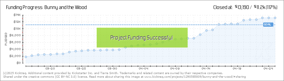 Oh my goodness!! We have officially hit our goal! Bunny and the Wood is now funded! We are in shock and overwhelmed with happiness, and that is all thanks to you! Thank you so much to everyone that has believed in our project. Your support means... (Read More)