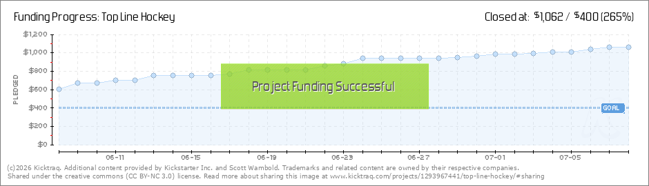 Hello hockey fans!With only 1 weekend left we have crossed $1000 for the first stretch goal! I couldn't have done it without you all!I hope you all had a wonderful 4th of July. Work has begun on the final layout of the book and the surveys to... (Read More)