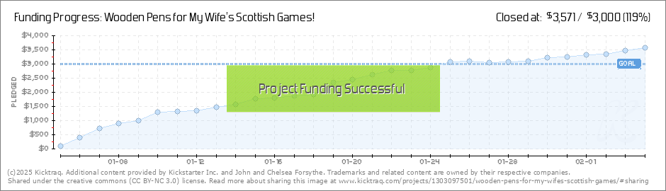 Hello all and thank you for your support! We crossed the two-thirds mark this morning, crossing $2,000 on a $3,000 goal with still roughly half the time left! I appreciate all of your support and backing, and I am excited to send you your pens! Most... (Read More)