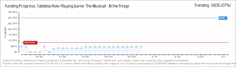Help your backers reach your daily goals and help others see how you're doing. It's easy, with Kicktraq Mini.Here are a few quick snippits of code you can use to embed your personalized widget on your website, in your blog, and even on your favorite forum.