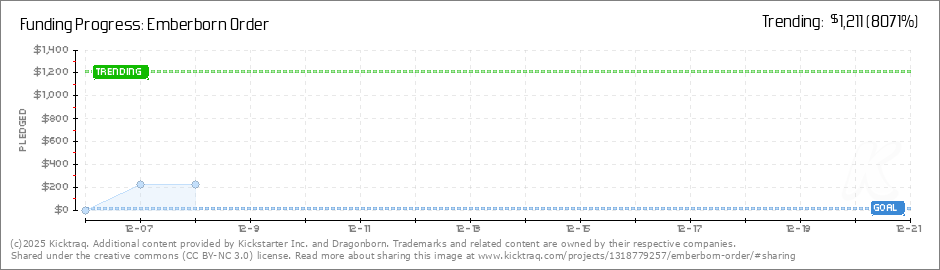 Help your backers reach your daily goals and help others see how you're doing. It's easy, with Kicktraq Mini.Here are a few quick snippits of code you can use to embed your personalized widget on your website, in your blog, and even on your favorite forum.