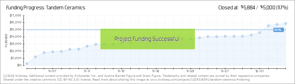 Hey all! Tomorrow marks one-month since the launch of Tandem Ceramics and we are already making some serious headway. Our Kickstarter was chosen as a Staff Pick, we have had two shows this month with lots of awesome feedback, and we have four days to... (Read More)