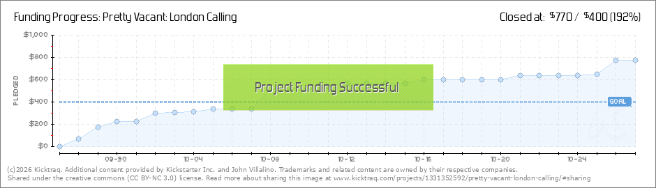 Huzzah! Our goal has been reached! Thanks to everyone who has pledged! However, this doesn't mean we plan on resting on our laurels. The more funding we have gives us the opportunity to make Pretty Vacant: London Calling that much better! So I have... (Read More)