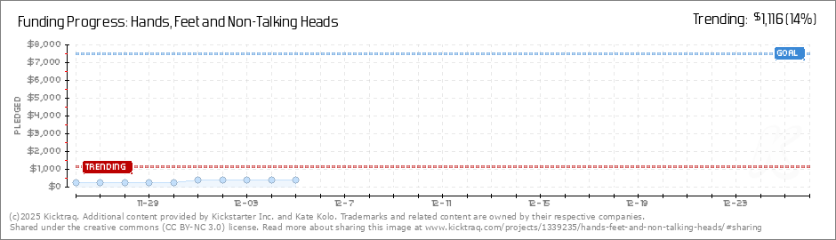 Help your backers reach your daily goals and help others see how you're doing. It's easy, with Kicktraq Mini.Here are a few quick snippits of code you can use to embed your personalized widget on your website, in your blog, and even on your favorite forum.