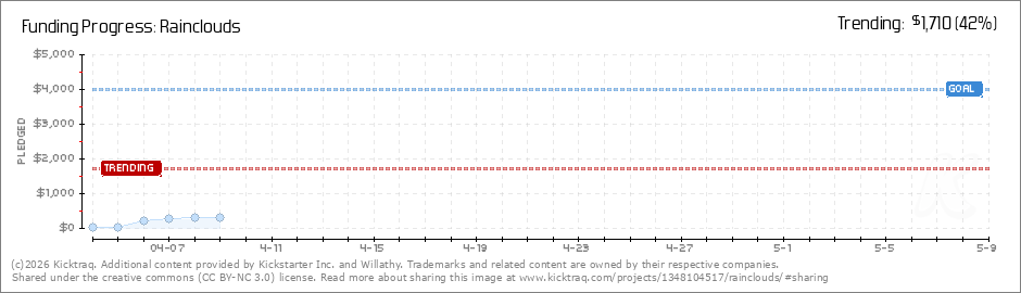 Help your backers reach your daily goals and help others see how you're doing. It's easy, with Kicktraq Mini.Here are a few quick snippits of code you can use to embed your personalized widget on your website, in your blog, and even on your favorite forum.