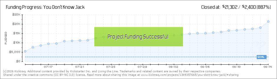 Hello everyone! With twelve days left of the campaign, we are squeaking ever-closer to $14,000, and to our larger stretch goal of $20,000, which will net all $15 and up backers digital files for You Don't Know Jack!, as well as PDF versions of "The... (Read More)