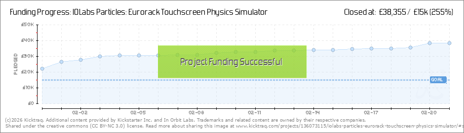 Thank you so much for the fantastic support! Particles has hit our goal on the first day of the campaign! We are so excited that the module will be going into production and we can't wait to hear the music that you will make with Particles! Like our... (Read More)