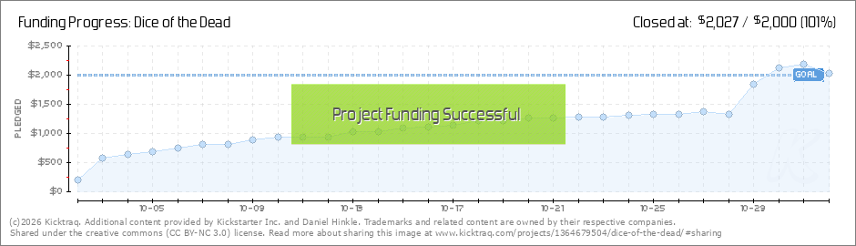 Were just over 50% backed and still just over two weeks to go. Thanks to everyone who backed so far! Help us spread the word and get these cool dice into the hands of undead gamers. (Read More)