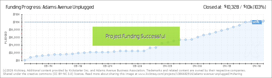 We are in the final hours of our campaign and still have $850 to raise. Thanks again for all your support! Help us make one final push to reach the $10,000 mark and fund the local musicians for Adams Ave Unplugged. We can do it! (Read More)