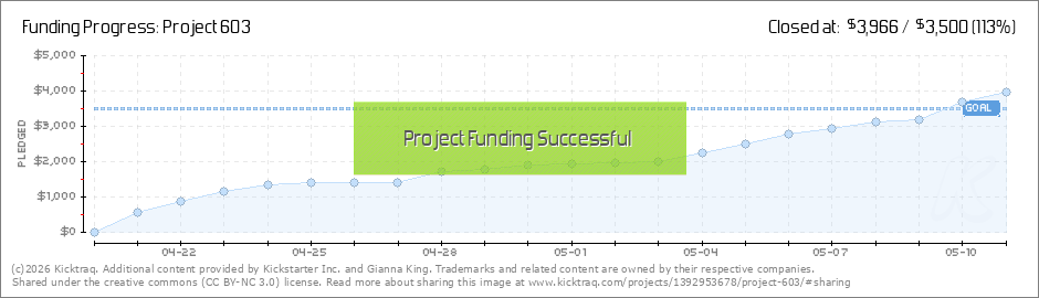 Help your backers reach your daily goals and help others see how you're doing. It's easy, with Kicktraq Mini.Here are a few quick snippits of code you can use to embed your personalized widget on your website, in your blog, and even on your favorite forum.