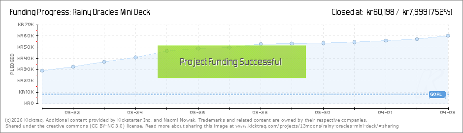 Help your backers reach your daily goals and help others see how you're doing. It's easy, with Kicktraq Mini.Here are a few quick snippits of code you can use to embed your personalized widget on your website, in your blog, and even on your favorite forum.