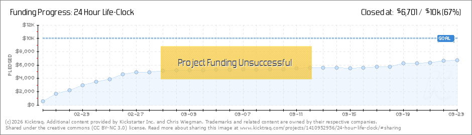More than 20% of the way there! We've had another strong day so far, and we can only hope to keep the train rolling. Big thanks to our latest backers and supporters. Exciting times at Life-Clocks!Stay tuned for more updates over the weekend. (Read More)