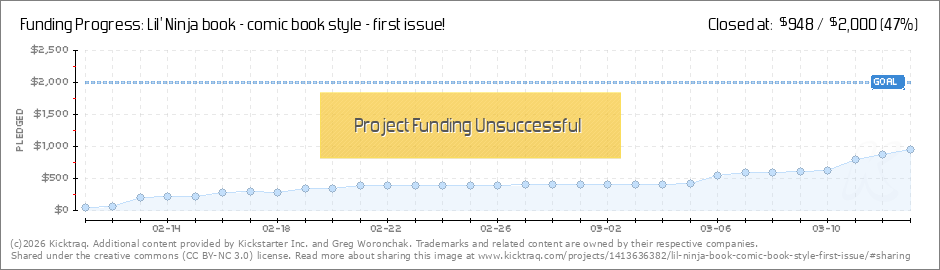Help your backers reach your daily goals and help others see how you're doing. It's easy, with Kicktraq Mini.Here are a few quick snippits of code you can use to embed your personalized widget on your website, in your blog, and even on your favorite forum.