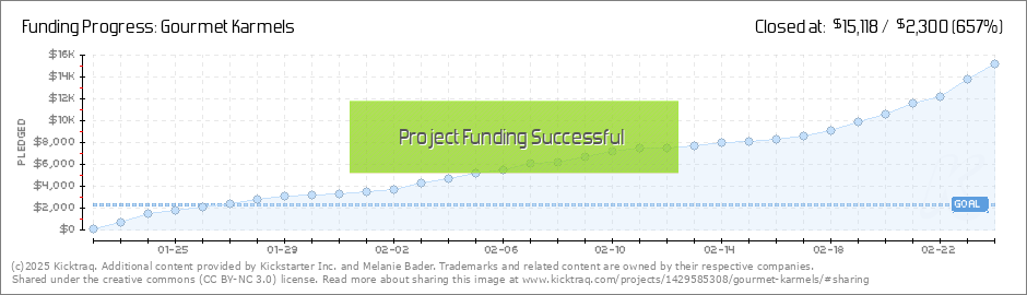 Oh my goodness!!! All of you are AWESOME! Because of you, we have met our $10,000 Stretch Goal! ...which means... We are opening up our Liquid Gold line!!! Our luscious Liquid Gold line is our Classic Flavor KarMels (minus the Pecan) in ooey... (Read More)