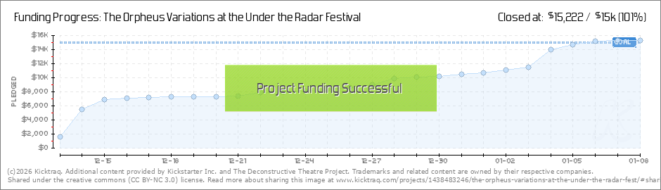 Dear friends! WE DID IT! Nearly 200 of you came together to pledge more than $15,000, and The Deconstructive Theatre Project is on its way to the Under the Radar Festival on January 10! I am thrilled, honored, and touched by the incredible outpouring... (Read More)
