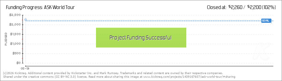 Help your backers reach your daily goals and help others see how you're doing. It's easy, with Kicktraq Mini.Here are a few quick snippits of code you can use to embed your personalized widget on your website, in your blog, and even on your favorite forum.