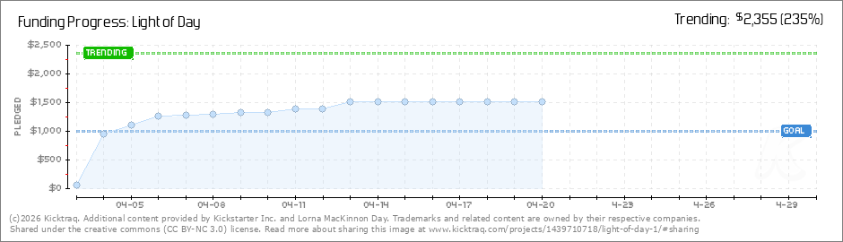 Help your backers reach your daily goals and help others see how you're doing. It's easy, with Kicktraq Mini.Here are a few quick snippits of code you can use to embed your personalized widget on your website, in your blog, and even on your favorite forum.