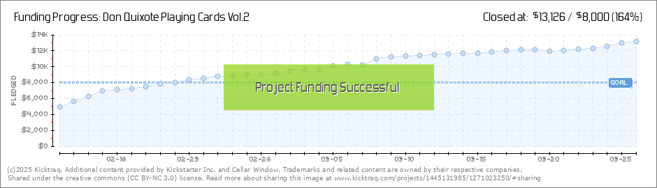 Hello, We only have a few more days until funding for the Clavileño deck! And we're almost at that stretch goal for Gold Foiling at $13k! Help push us to that stretch goal by sharing this link: http://bit.ly/donquixotevol2 Other Cool Live... (Read More)