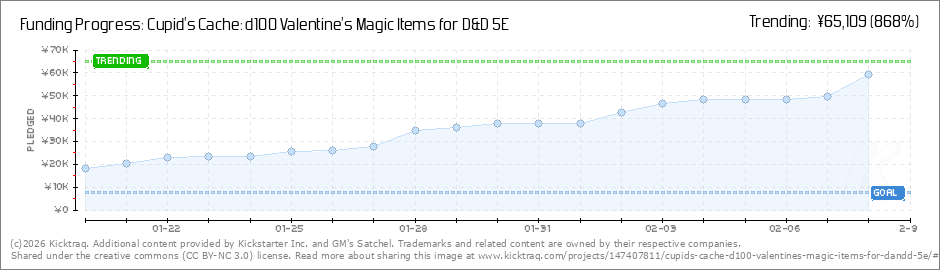 Hello Adventurers! We have officially crossed the funding goal! A massive thank you to the backers who jumped in to support the project so far. Thanks to you, Cupid’s Cache is officially a reality. When do I get my rewards? Since the content is... (Read More)