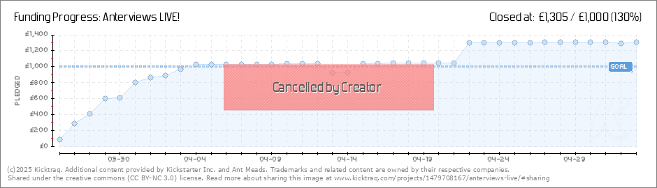 So 'Anterviews Live' has now hit £690. In 4 days. I think I can safely assume that the project has some support! I know I keep asking for help but if you could all share this kickstarter that would be amazing. As a wise man once said, 'tell your... (Read More)