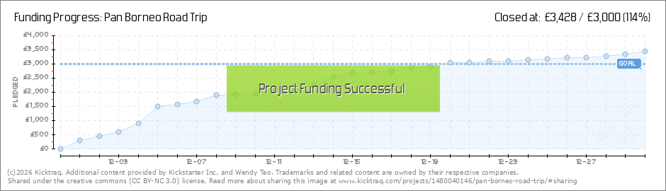 Dear beautiful people, Today, our 'Pan Borneo Road Trip' crowdfunding campaign reached its 8th day. Looking at the graph, we are half way (57%) towards our fund target, we cannot thank you enough for offering such tangible support. You beautiful... (Read More)
