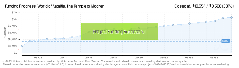 T Minus 10 Days and Counting!Just 10 days left in the World of Aetlatis: Temple of Modren Kickstarter! Based on the results of similar projects (comparing pre-launch knowledge, levels of initial support, contributors, and a number of other factors)... (Read More)