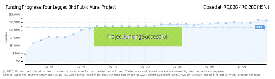 Four-Legged Bird wants to paint a 10' x 50' public mural to help support local art in Fayetteville, AR.