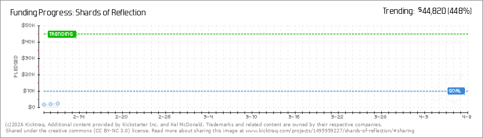 Thank you everyone who has backed so far!In the first 24, hours Shards of Reflection is just shy of $2k. I really appreciate everyone jumping in right away. The first 3 days are always really important. I've done 19 Kickstarters and usually... (Read More)