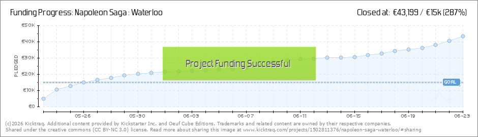 Cycle 2 is now officially over, upgrading the game components of Napoleon Saga for everyone! And to show you our gratitude we will add for free a campaign guide to use with the core box. Now, to start our new cycle of stretch goals we have the... (Read More)