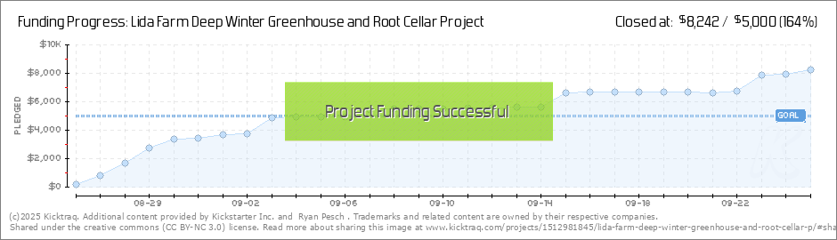 Thanks to all who have backed our project. We reached our goal of $5,000 yesterday! We celebrated last night with our work crew of Kelsey, Jeremy, and Zach. This is great and we know we'll have the funds with our other financing sources to make... (Read More)